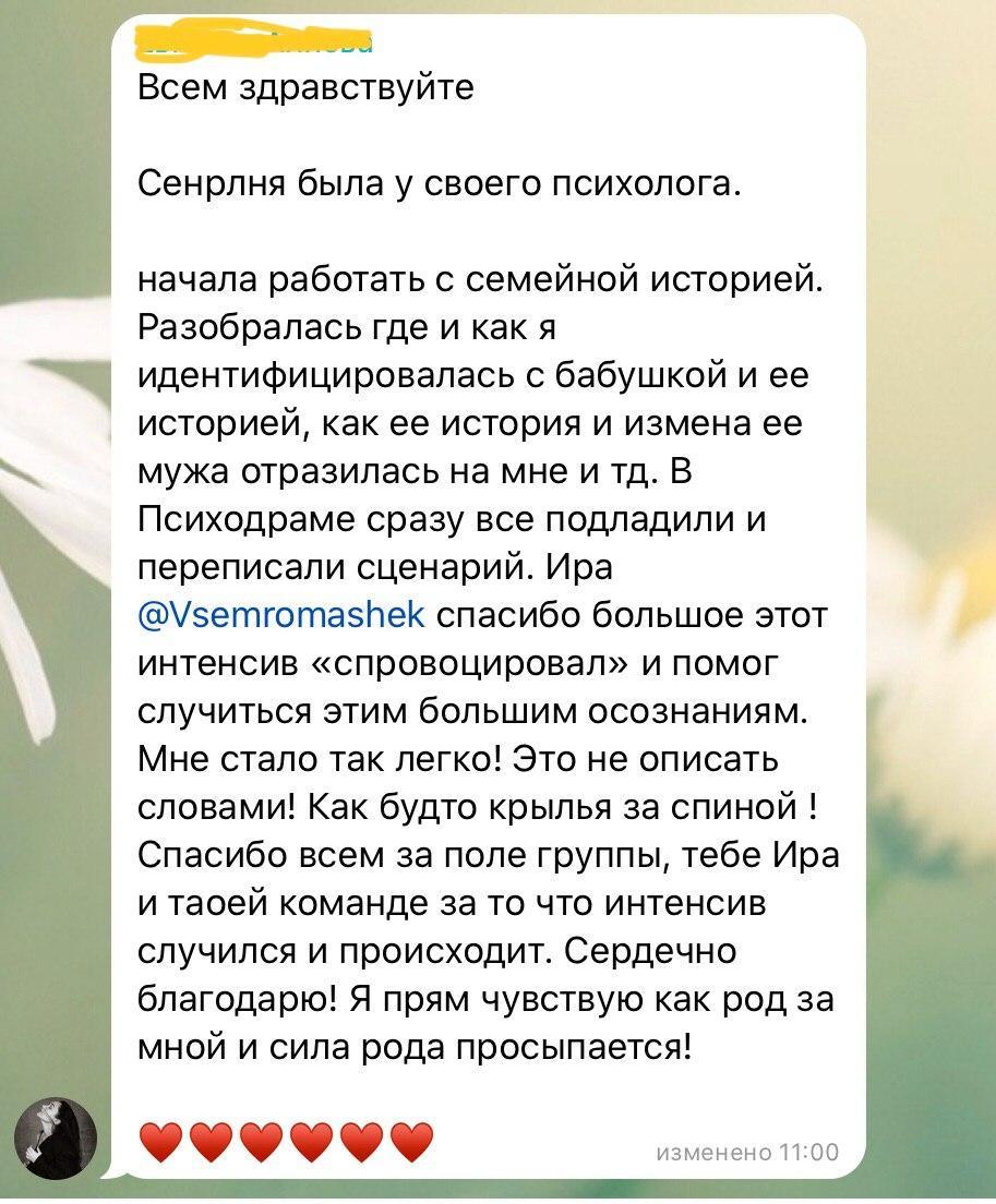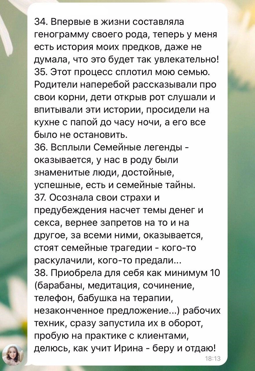 Да, после того, как Вы попробовали и Вам понравилось, Вы можете доплатить 170 тысяч рублей, и получить ВСЕ преимущества участия индивидуальной работы, то есть 12 личных встреч с Ириной Хмелевской